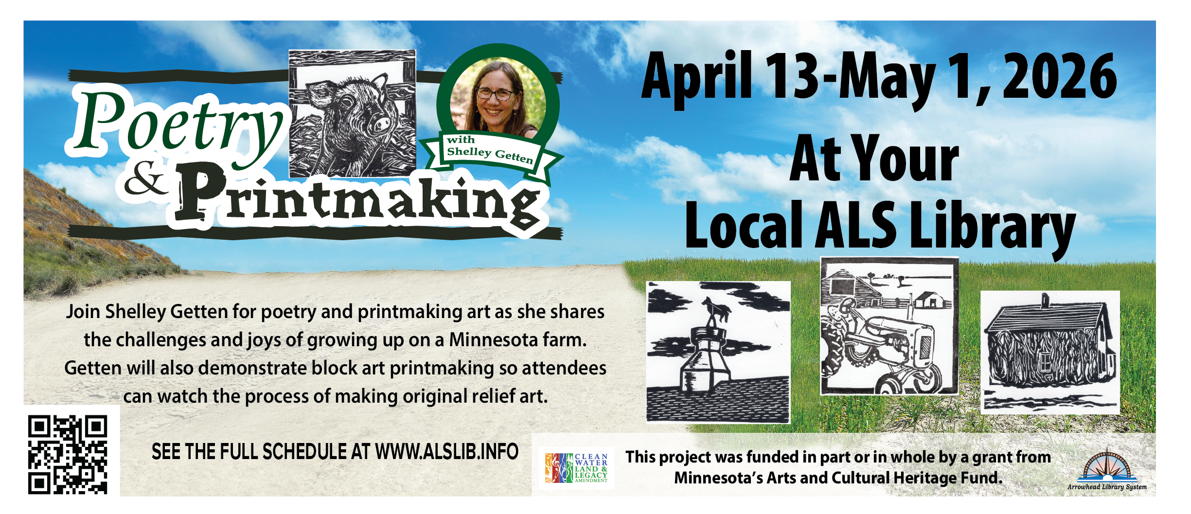 I’m thrilled to announce my Arrowhead Regional Library TOUR presenting: “Poetry and Printmaking”
